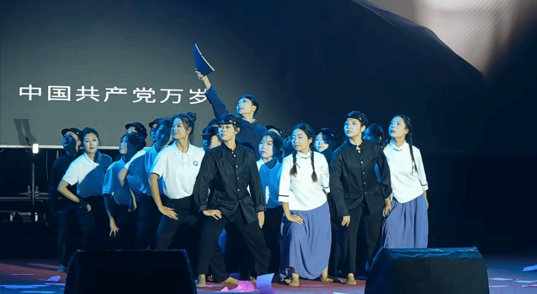大名校区任晴,张校锴,温翔宇等学子演绎的舞剧《觉醒年代》,用肢体语言演绎百年师范史,彰显与党同行、红色师范的底色,点燃全场信仰之光。