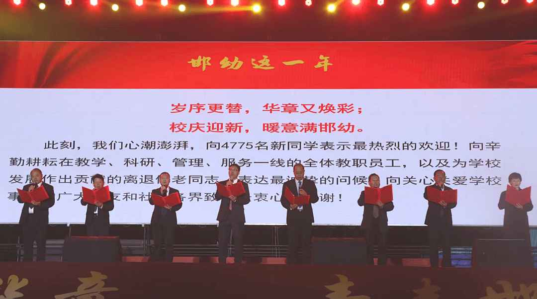 百年师范庆华诞,青春邯幼迎新生。10月23日晚上,我校2025年“贺校庆迎新生”文艺晚会在主校区体育场盛大上演。校党委书记万永彪,党委副书记、校长曹建召出席,学校党委领导班子其他成员,校属各单位、机关各部门主要负责同志,全体辅导员、2025级全体新生参加。
