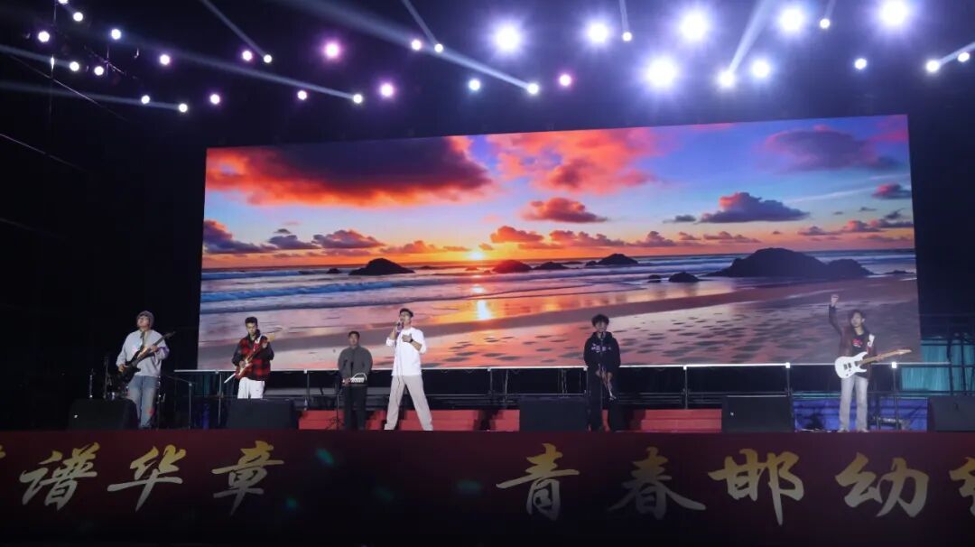 艺术系教师颜佳豪、冯培垚携海岸线乐队带来的歌曲《我们的时光》,展现了师生热血青春和年少时激情澎湃的细碎点滴,致敬为梦前行的每一个邯幼人。