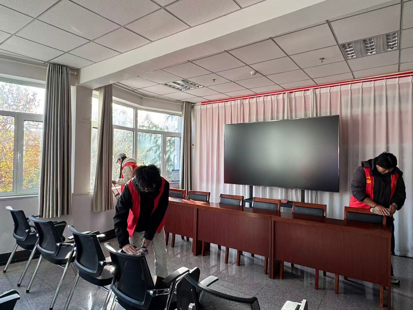 活动当天,艺术系团员志愿者们在系领导王俊卿、王文霞及系内志愿者老师们的带领下准时抵达党群服务中心。同学们迅速分组、领取清洁工具,明确分工后即刻投入战斗,热情高涨,干劲十足,成为党群服务中心里一道充满活力的青春风景线。