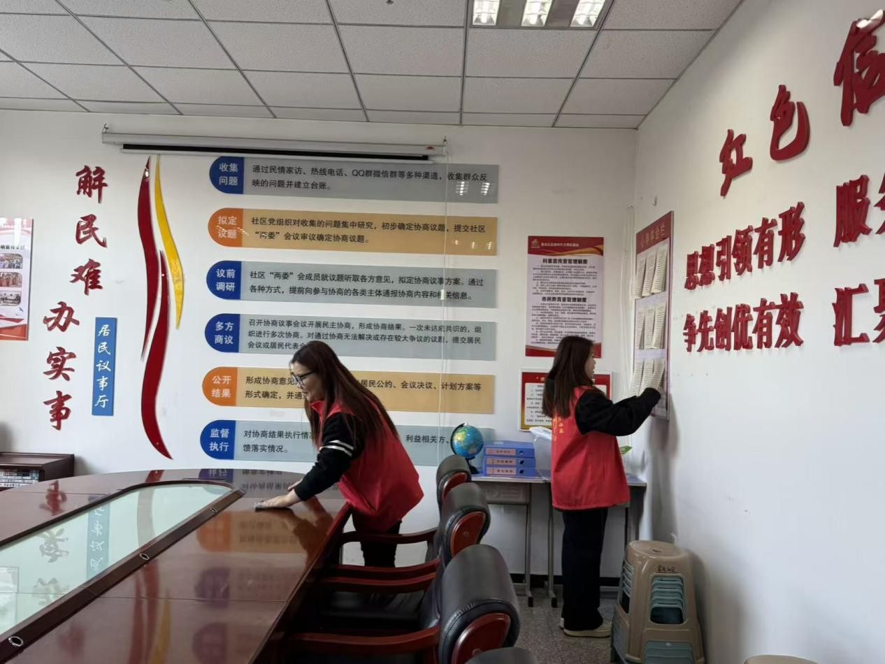 劳动过程中,志愿者们不怕累、不怕脏,互相配合、默契协作。面对难以清理的卫生死角,大家合力搬运杂物、反复擦拭污渍,用耐心和细心让党群服务中心的每一个角落都焕发出新的光彩。
